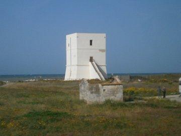 Salzseen bei Margherita di Savoia, Küsten-Wachturm.