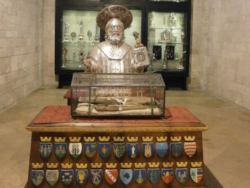 Schwibbögen und vergoldete Holzdecke, Silberreliquiar Hl. Nikolaus.