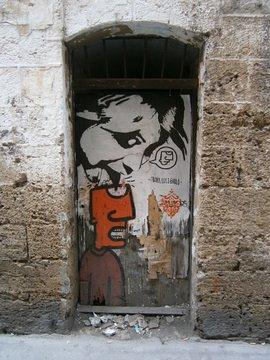 Enge Gassen mit Schwibbögen und kuriosen Toren, Straßenkunst.
