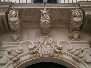 Palazzo Marrese im typischen Lecceser Barock (18. Jhdt.), Figurenkonsolen.
