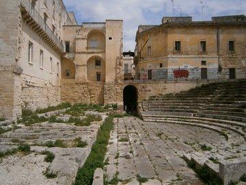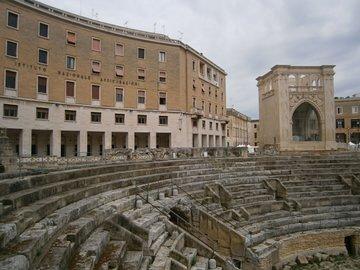 Piazza San Oronzo mit röm. Amphitheater (Kaiser Hadrian, 2. Jhdt. n. Chr.)