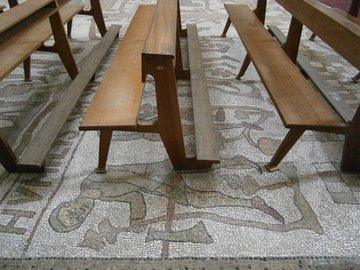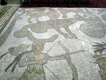 Riesiges Bodenmosaik (12. Jhdt.) mit Monatsdarstellungen, Fabelwesen, Bau der Arche Noah.