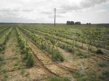 Die berühmten "Primitivo"-Reben (niedrige Weinstöcke), Wachturm mit angebauter Kirche.