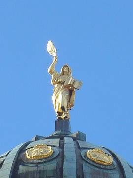 Allegorische Figuren am Giebel des Schauspielhauses.