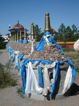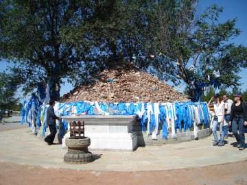 Das Scheingrab (Kenotaph) des Mongolenherrschers mit den Steinen der Pilger am