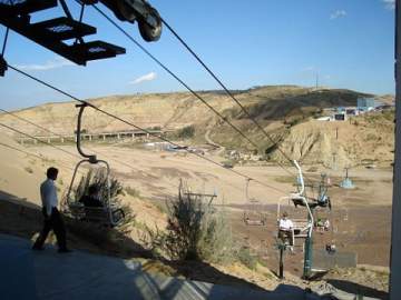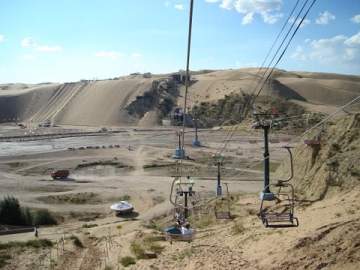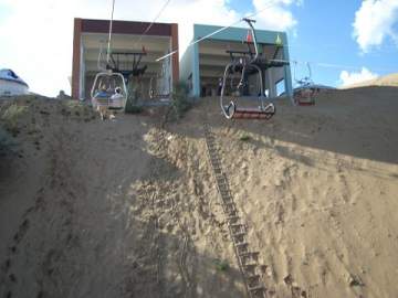 Der Sessellift zum Wüsten-Sportcenter (Bogenschießen, Kamelreiten, Jeepfahren,