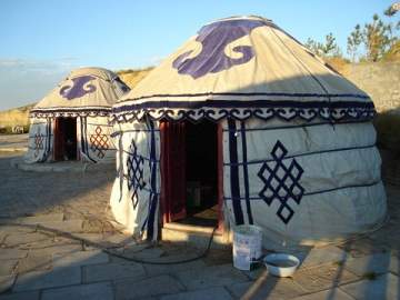 Bei jedem Gehöft steht auch eine traditionelle Jurte.