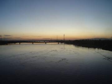 Sonnenuntergang am Gelben Fluß (Huanghe).