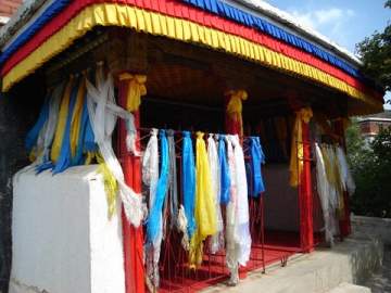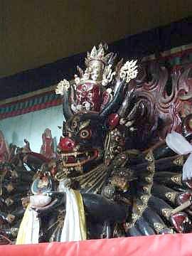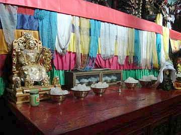 Im Inneren wachen furchterregende Götter über die Opfergaben.