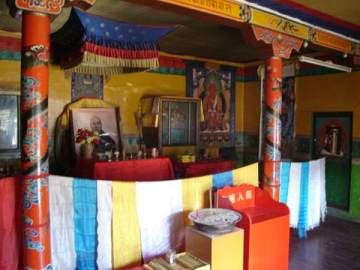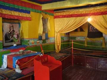 Ein kleines Museum zeigt tibetische Kunstgegenstände, rechts ein Sandmandala