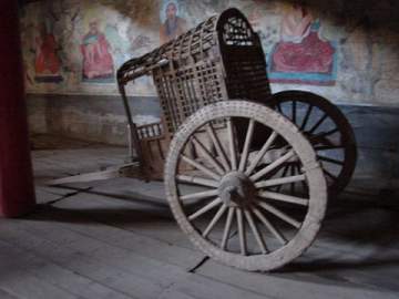 Kostbare Seidenbilder links, rechts ein Einblick in den "Vorlesungssaal" der