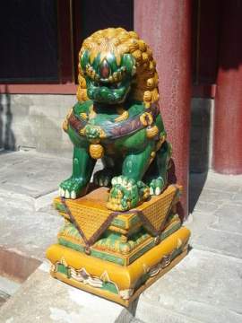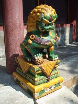 Das weibliche und männliche Fabelwesen (Fo-Löwen), diesmal bunt glasiert.