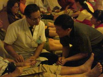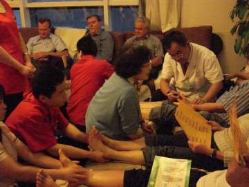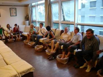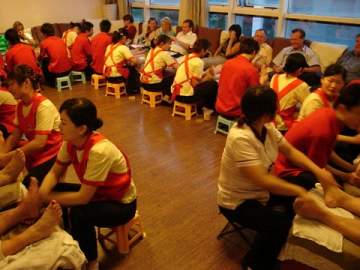 Kollektives Tee-Fußbad, anschließend Massen-Fußreflexzonen-Massage.