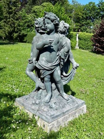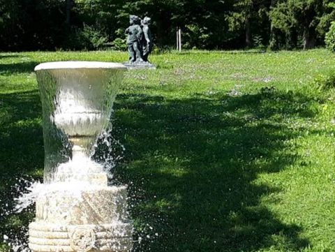 Springbrunnen, Skulpturen und alte Bäume erfreuen die Besucher.