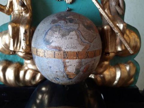 Drehbare Weltkugel, die vom Uhrwerk angetrieben wird.