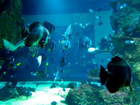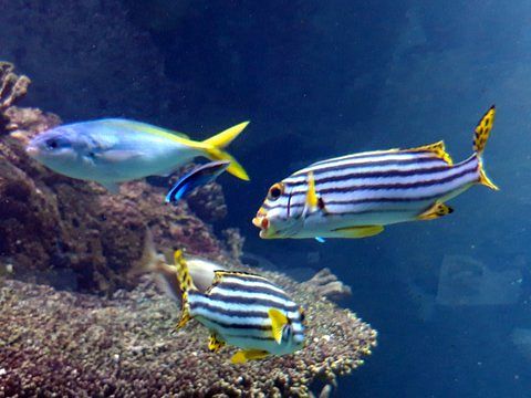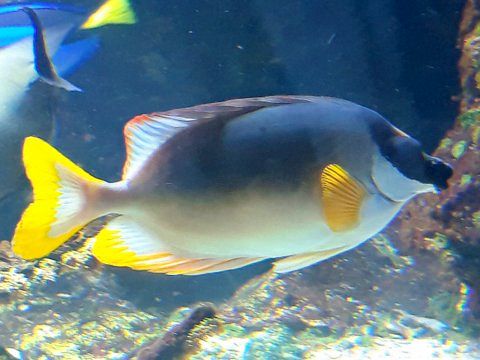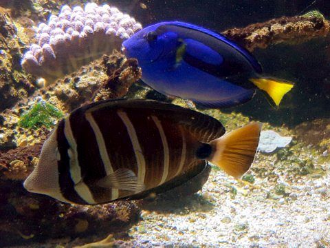 Segelflossen-Doktorfisch und Paletten-Doktorfisch (blau).