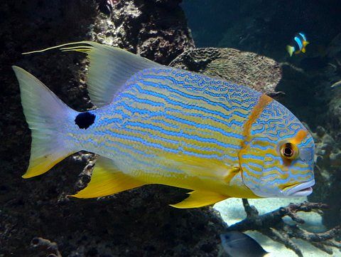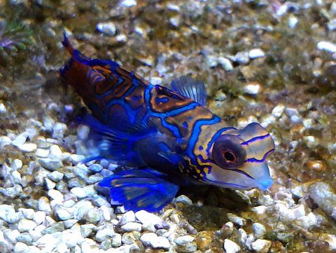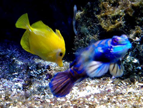 Zitronen-Segelflossenfisch und Mandarinfisch.