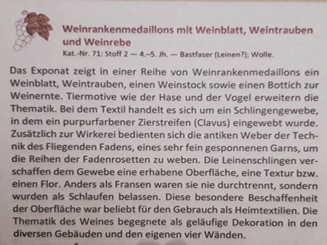 Die Papyrussammlung der Österreichische Nationalbibliothek archiviert hunderte Objekte, die sowohl die vielfältigen Aspekte des antiken Weinbaus und Weingenusses, als auch die kulturellen und gesellschaftlichen Veränderungen zeigen, die sich in der Weinkultur widerspiegeln. Die bemerkenswertesten Exponate zeigt sie in der Sonderausstellung des Papyrusmuseums: „In vino veritas. Wein im alten Ägypten“. Pacht- und Kaufverträge gewähren einen Einblick in den Alltag von Winzern und Weinhändlern, Quittungen dokumentieren die Bedeutung für die Verpflegung von Soldaten. Nicht zuletzt belegen Briefe und farbenprächtige Zierstücke an Textilien die zentrale Rolle des Getränks im täglichen Leben und in der Religion.