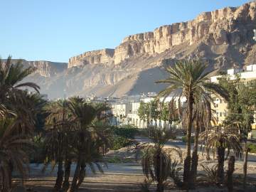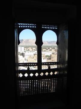 Das "Al-Ahqaf-Tourist Hotel" in Seyoun, Ausblick aus dem Hotelzimmer.