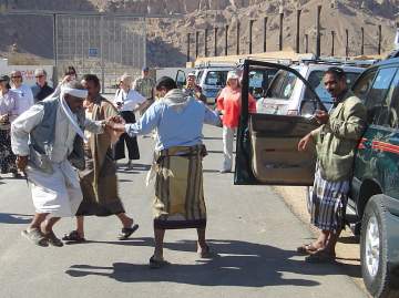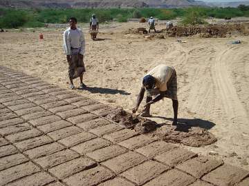 Unsere Fahrer legen ein Dschambiya(Krummdolch)-Tänzchen hin. Lehmziegel-Erzeugung (für die wunderschönen Lehmhäuser).