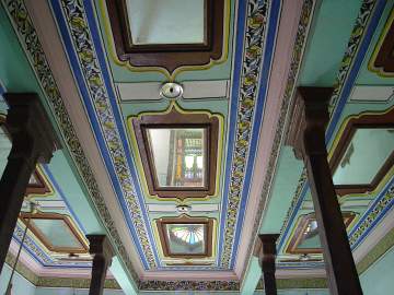 Prächtig ausgestatteter Spiegelsaal. Viele Elemente erinnern an Südostasien.