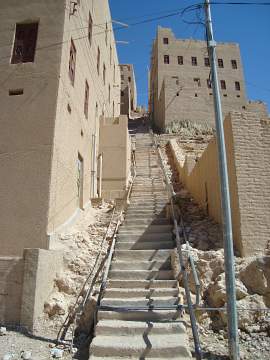 Interessante Eingangstüren, steile Treppe in die Stadt hinauf.