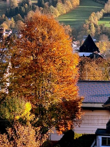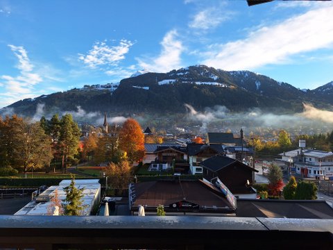 Im September bekamen wir einen Anruf von Eurotours/Hofer aus Kitzbühel mit einer Einladung für 3 Tage/2 Nächte in das Hotel Schweizerhof in Kitzbühel im Rahmen einer Gästeehrung. Wir sagten gerne zu und wollten danach noch 3 Nächte in Salzburg im Altstadt Hotel Hofwirt anschließen. Leider erlitt Rudi am 27. Okt. einen Bruch des linken Mittelfußknochens, aber da er am 2. Nov. einen Gehgips bekam, konnten wir die gebuchte Reise mit der Westbahn doch antreten. Am Samstag schüttete es entsetzlich, sodaß wir mit dem Taxi zum Westbahnhof fuhren, in Kitzbühel lag das Hotel gleich in Bahnhofsnähe (Station Kitzbühel Hahnenkamm). Ein weiteres Taxi brachte uns zum Firmensitz von Eurotours in der Nähe des Ortes.
