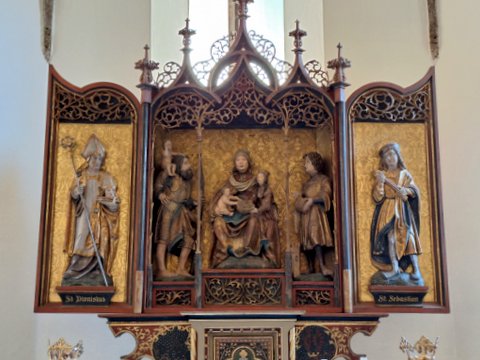 Seitenflügel: Hl. Dionysius (links), Hl. Sebastian (rechts).