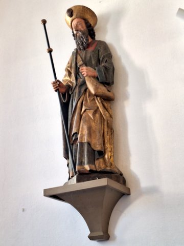 Hl. Jakobus mit der Pilgermuschel und Pilgertasche.