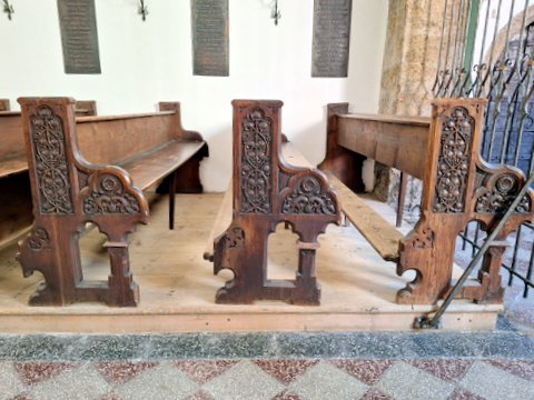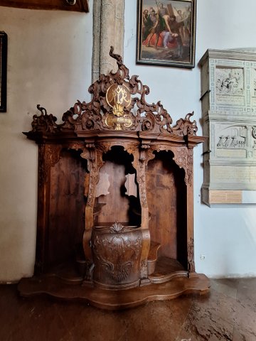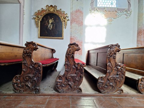 Barockes Kirchengestühl mit Löwenköpfen von 1720