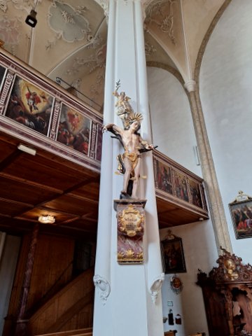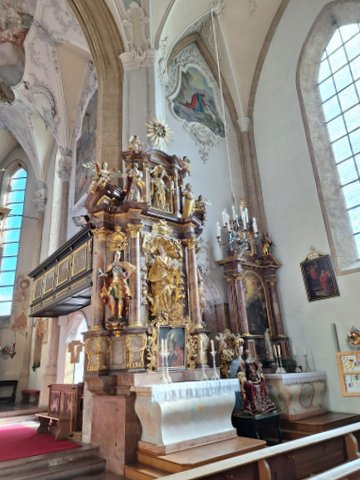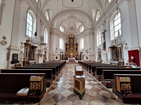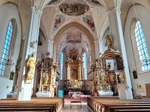 Spätgot.-barocker dreischiffiger Bau (Baubeginn Stefan Krumenauer aus Sbg.).