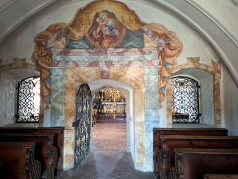 Vorraum im Turm mit Fresko des Gnadenbildes.