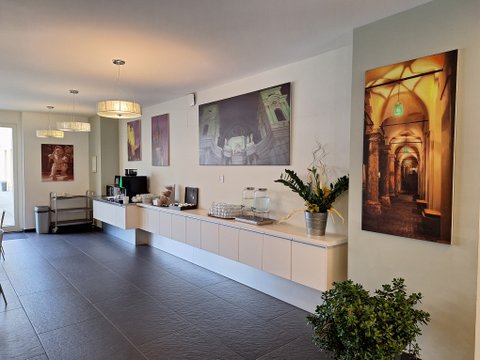 Aufenthaltsraum mit Kaffee- und Teeangebot.