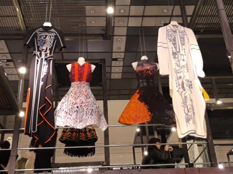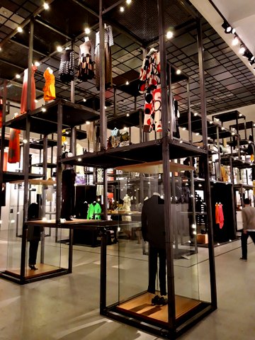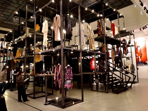 7 m hoher Turm (Architekt Gregor Eichinger) mit 250 Modeobjekten aus 4 Jahrzehnten.