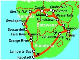 Südafrika/Botswana/Simbabwe/Namibia-Rundreise