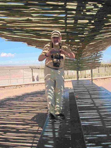 Am Donnerstag, 2. 3., fuhren wir um 5 Uhr (es gab nur ein Frühstückspaket) in Richtung Sossuvlei ab (642 km). Vlei bedeutet Senke, wobei das Sossuvlei Teil einer 300 km langen und 140 km breiten Dünenlandschaft ist. Bis zu 300 m erheben sich die Dünen rund um die riesige Salzpfanne. Gegen Mittag wechselten wir in Jeeps und fuhren auf einer Piste in die Nähe der hohen Dünen. Auf die höchste Düne konnte man hinaufwandern, mir war es aber viel zu heiß, ich blieb im Schatten und besah mir in Ruhe die Gegend mit interessanten Bäumen und Vögeln. Anschließend fiel der Besuch des Sesriem Canyon (30 m tief, wie 6 Riemen von Ochsen) nach extremem Regen ins Wasser, der Fluß war zu hoch. Abends erreichten wir das Hotel Maltahöhe in Maltahöhe. Es ist das älteste Landhotel in Namibia (über 100 Jahre alt) und ziemlich urig, mit Biergarten und Kneipe, aber die Zimmer sind sehr abgewohnt, voller Insekten, wir waren nicht begeistert. Nett war nur das bestickte Nashorn-Bettzeug. Immerhin gab es ein Moskitonetz, aber sonst nichts. Wir wollten noch Wasser kaufen, doch der Ort wirkte ausgestorben. Das Abendessen war gut und schmackhaft (mit Oryx-Geschnetzeltem!). Die Getränkepreise waren hier überraschend teuer (ein Glas Weißwein 40 Rand). (Siehe Hotel-Webseite)