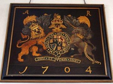 Bunte Wappenreihe (Mitte Lilien und Löwen, das engl. Königswappen,