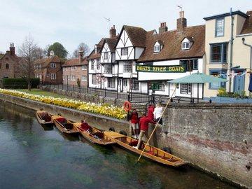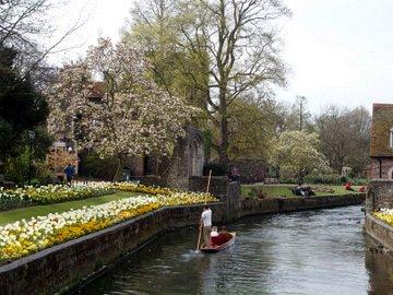 Die Universitätsstadt liegt am Fluß Stour in der Grafschaft Kent und ist Sitz des Erzbischofs von Canterbury. Canterbury ist Zentrum der Anglikanischen Kirche Englands und Anziehungspunkt für viele Besucher; nach der Ermordung von Thomas Becket waren das vor allem die mittelalterlichen Wallfahrer. Im 12. Jhdt. avancierte Canterbury zur zweitgrößten Münzstätte Englands nach London. Im 16. Jhdt. setzte dank der Einführung der Weberei durch die Hugenotten, die als Religionsflüchtlinge vom Festland kamen, ein wirtschaftlicher Aufschwung ein. Die Stadt hat eine Stadtmauer aus dem 14./15. Jhdt. mit 17 noch erhaltenen Türmen. Von den sechs alten Toren ist nur noch das West Gate übrig. Das Canterbury Castle aus dem 11./12. Jhdt. mit seinen 4 m dicken Mauern wurde im 19. Jhdt. von einer Gas Company als Kohlenlager benützt. Am Fluß Stour liegen die historischen Weberhäuser der Hugenotten (16. Jhdt.).