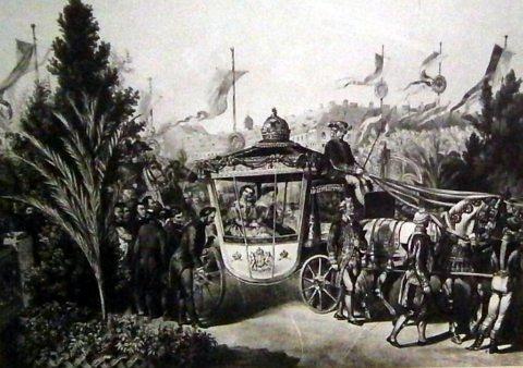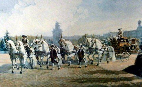 Im Vordergrund: Gala-Coupé des Oberststallmeisters.